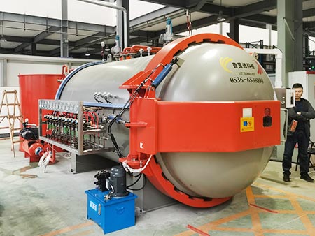 产品名称 复合材料热压罐 生产厂家 山东鑫泰鑫智能装备有限公司 工作温度 +20~300℃ 控制温度 ±1.0℃ 升温速度 3.5℃/MIN 降温速度 3.5℃/MIN 工作压力 P=10.1~4.0MPa 升压速度 0.1MPa/MIN 降压速度 0.2MPa/MIN 真空度 H=1.5~2.5KPA(绝对压力) 复合材料热压罐具有以下主要功能: